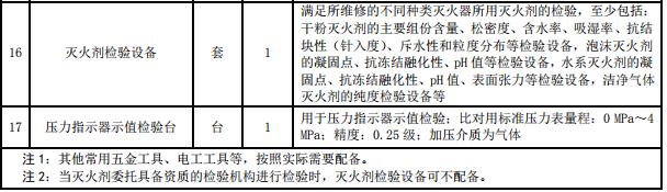 三級消防設(shè)施維護保養(yǎng)檢測設(shè)備用于滅火器的檢查、維修、更換滅火劑及回收,其設(shè)備配備的種類和數(shù)量至少應(yīng)滿足表 3 的要求。